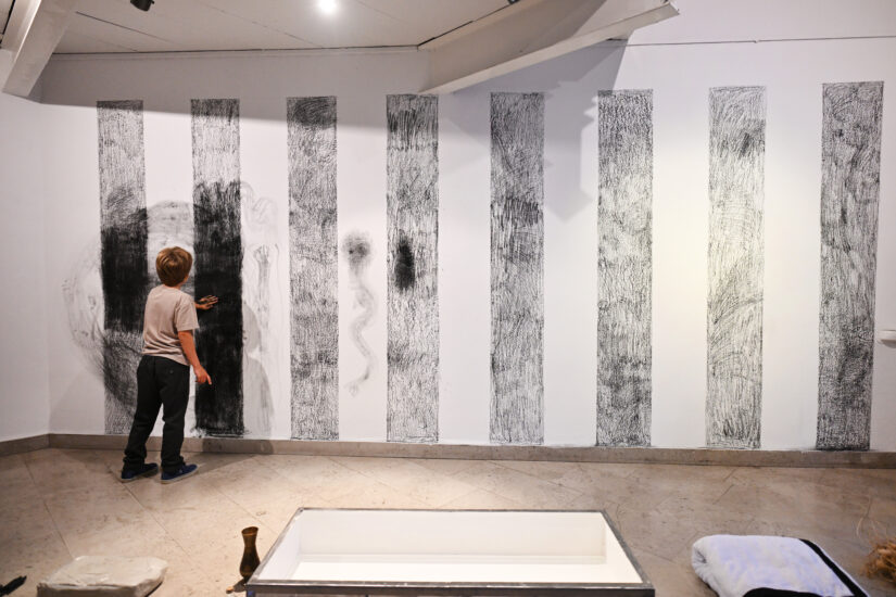 Risali bomo na »neskončni papir« in na velikih formatih z ogljem skozi nadzorovane in nenadzorovane geste izrazili svoja občutja. Dopolnjevali bomo podobo dokler ne bomo vsi prispevali k risbi vseh udeležencev_k in zapolnili velike bele površine z motivi, vzorci in gestami iz ogljenega prahu. Na koncu bomo risbo oblikovali v veliko valujočo skulpturo, ki jo bomo začasno postavili na ogled na razstavi Upor telesa v Likovnem salonu.