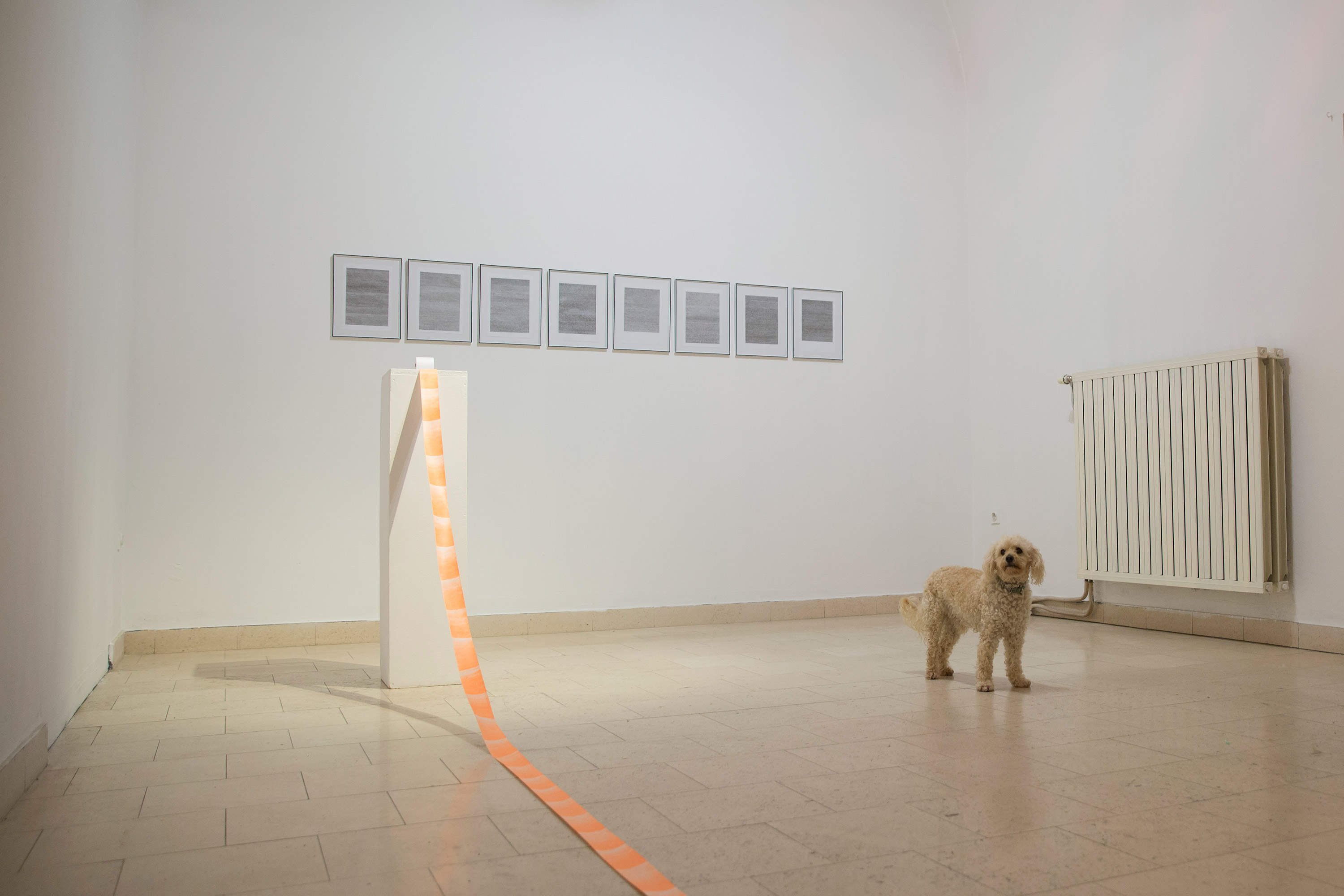 The opposite to contemporary ideas about work and time, is slow manual work, the transformation of an Excel table of various financial transactions into a woven scarf; each drawing is the materialization of time, the result of exactly one hour of the continuous repetitive drawing process, a drawing and time simultaneously; material transformed into artwork, a used up pencil on a receipt roll, speaks about being spent – Accounting, Eight Hours of Work and Jolly Neonorange are the works of Anja Jelovšek, which encourage reflection on contemporary concepts of work and the trend towards the intensification of work, as there is more and more work to be done, more and more quickly. In the works that use the form of repetition, in which an action or event is repeated over and over again, there is always a difference in the repeats that are not regular in the sense of reproducing the original. A new or additional meaning is inscribed in these differences. The passing of time, in the piece Me and My Mother by Ragnar Kjartansson (the exhibition presents all four video works produced to date), in which the only two protagonists repeat the same emotional, unusual and surprising performance every five years, the same situation in the same space, but with each time they are five years older than in the previous repetition. The stretching of time, through the repetition of a specifically defined moment in time in the piece Before the First Light by Davor Sanvincenti, who also highlights the unrepeatability of the moment at every time with a single Polaroid shot, as he captures a landscape imbued by special light and silence, moments before the dawn of a new day, at whatever location he may find himself. Or its stopping, in the project These flowers will never die by Ana Straže, who postpones the transience of life by repeatedly performing the same thing over and over again, photographing flower bouquets that have been given to her as gifts, just before they finally wither away.