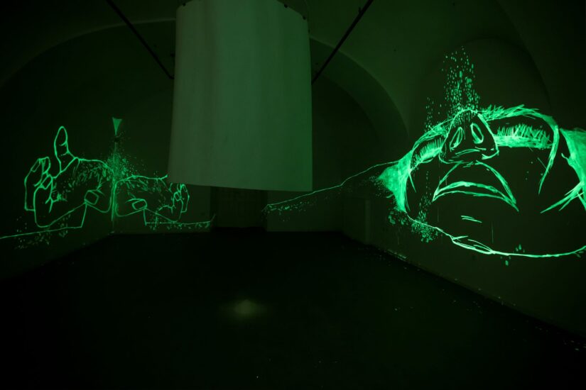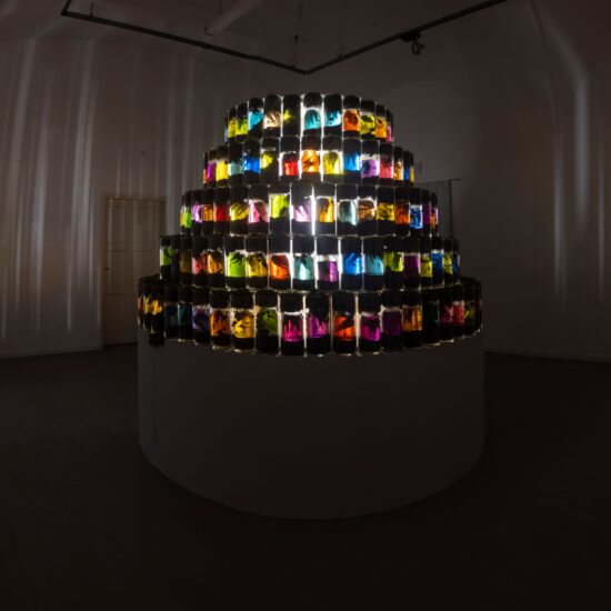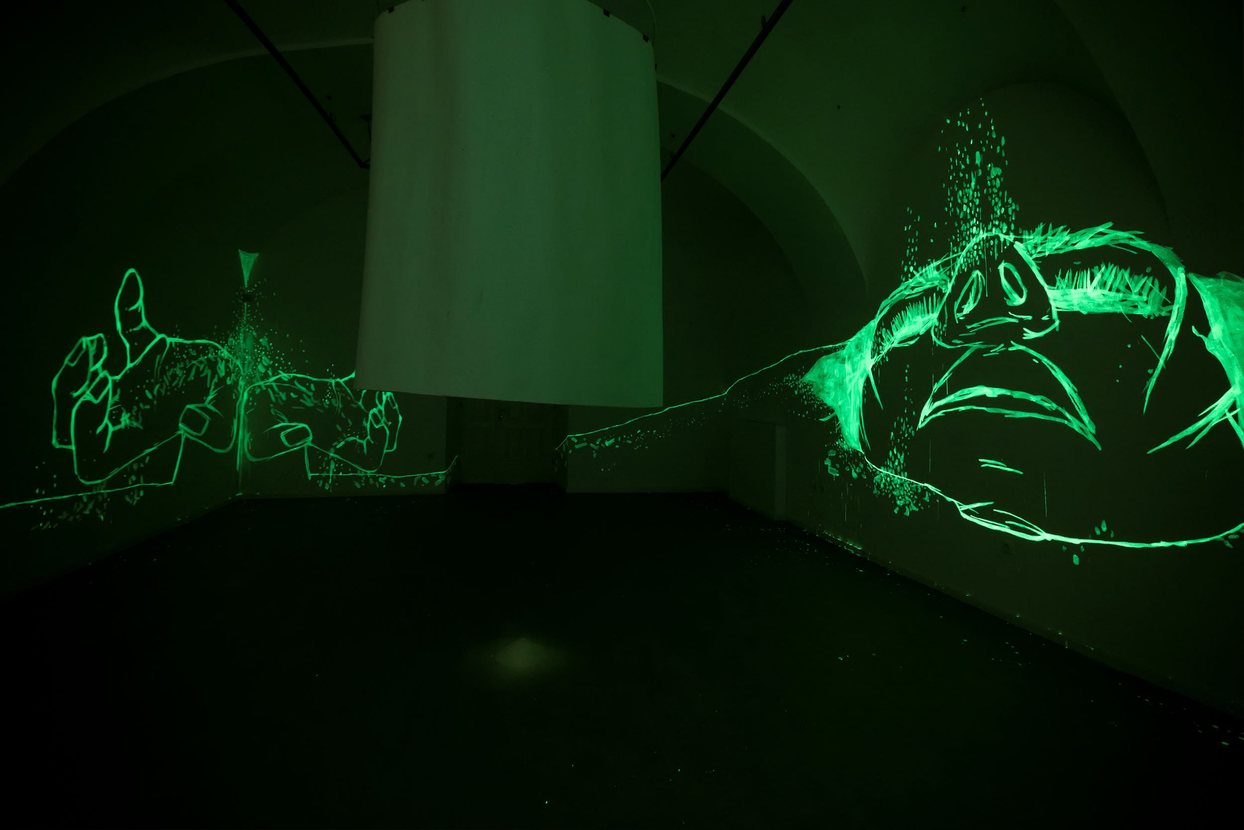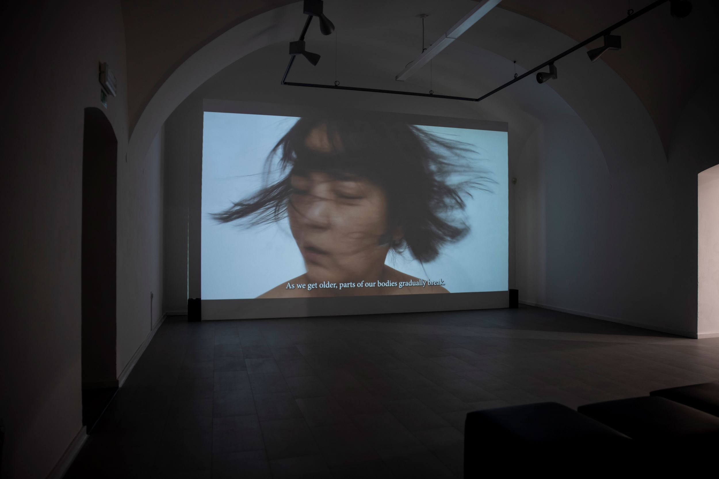 Naslednje delo, video projekcija Qudragenarian, ki s svojo velikostjo zaobjema celotno steno prostora, v katerega je umeščena, prikazuje do podrobnosti približan ženski obraz v upočasnjenem posnetku. Koža in mišice, ki so izgubile popolno mladostno čvrstost, tvorijo s počasnim premikanjem z ene strani na drugo nenavadne, včasih do grotesknosti pretirane oblike. S tatujem v obliki potrošniške kode, ki je vtisnjen na obraz, delo govori o sodobnosti, ki je težavno soočanje s staranjem, zlasti žensk, sicer prisotnim vseskozi, tudi v preteklosti, v enih kulturah bolj in drugih manj, z imperativom mladosti in mladega telesa, intenziviranjem želje po ohranjanju mladosti, medijskimi reprezentacijami in agresivnim oglaševanjem poblagovila in prignala do skrajnosti. Staranje, ki se v zavest sodobnega človeka vpisuje kot grožnja, umetnica tematizira tudi v delu Neizogibno, ki ga z izmenjavanjem svetlobe in teme sestavljata dve različni vizualni situaciji. Podobe teles, med njimi se izrisujejo povešene prsi, ohlapen trebuh in stegna, nanesene s fluorescentnim pigmentom, se v temi nežno pojavijo na stenah, v svetlobi jih nadomesti podoba časa, minevanja in končnosti: instalacija s tankim curkom drobnega peska, ki se počasi, a nezadržno steka na tla.